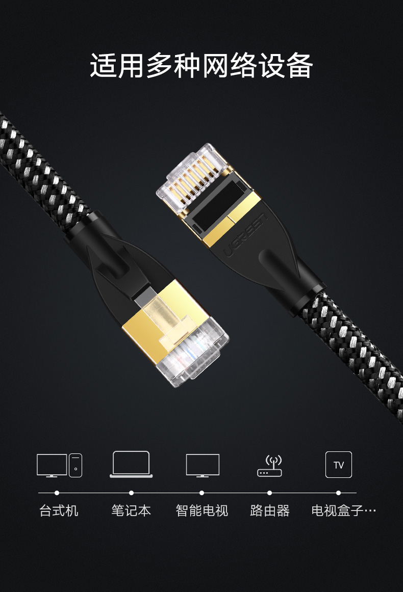 綠聯(lián)(UGREEN)超六類網(wǎng)線 CAT6a類純銅萬兆高速網(wǎng)絡(luò)連接線 電腦寬帶8芯雙絞線 成品屏蔽跳線 2米 黑 50352