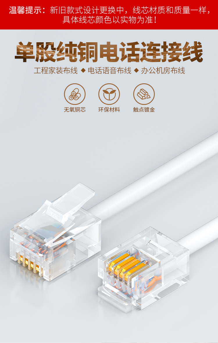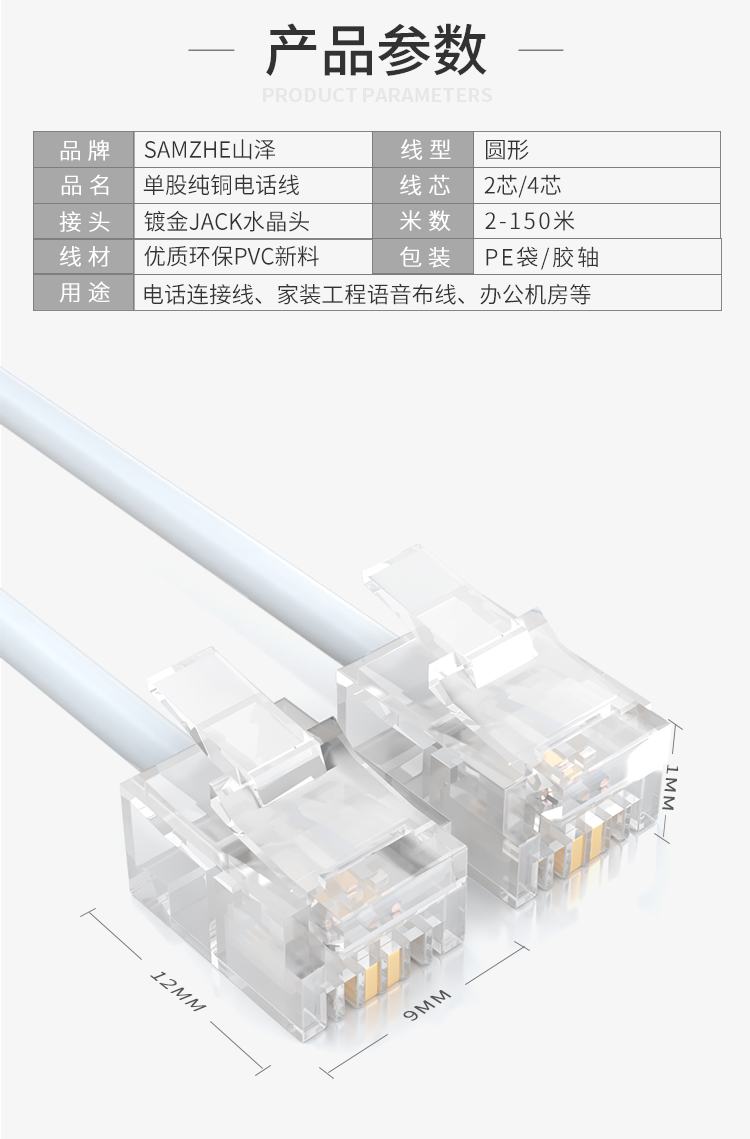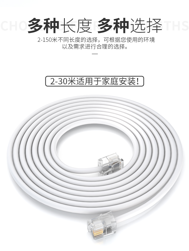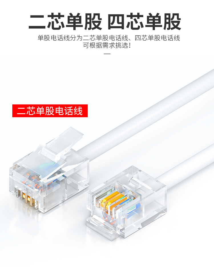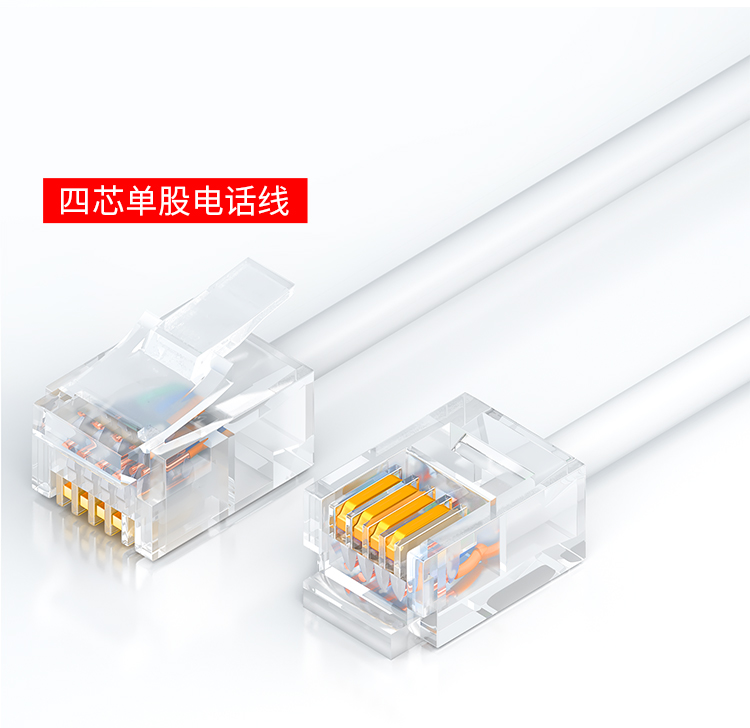 山澤 SAMZHE電話線2芯單股純銅座機(jī)跳線 語(yǔ)音連接線延長(zhǎng)線 帶電話水晶頭成品
