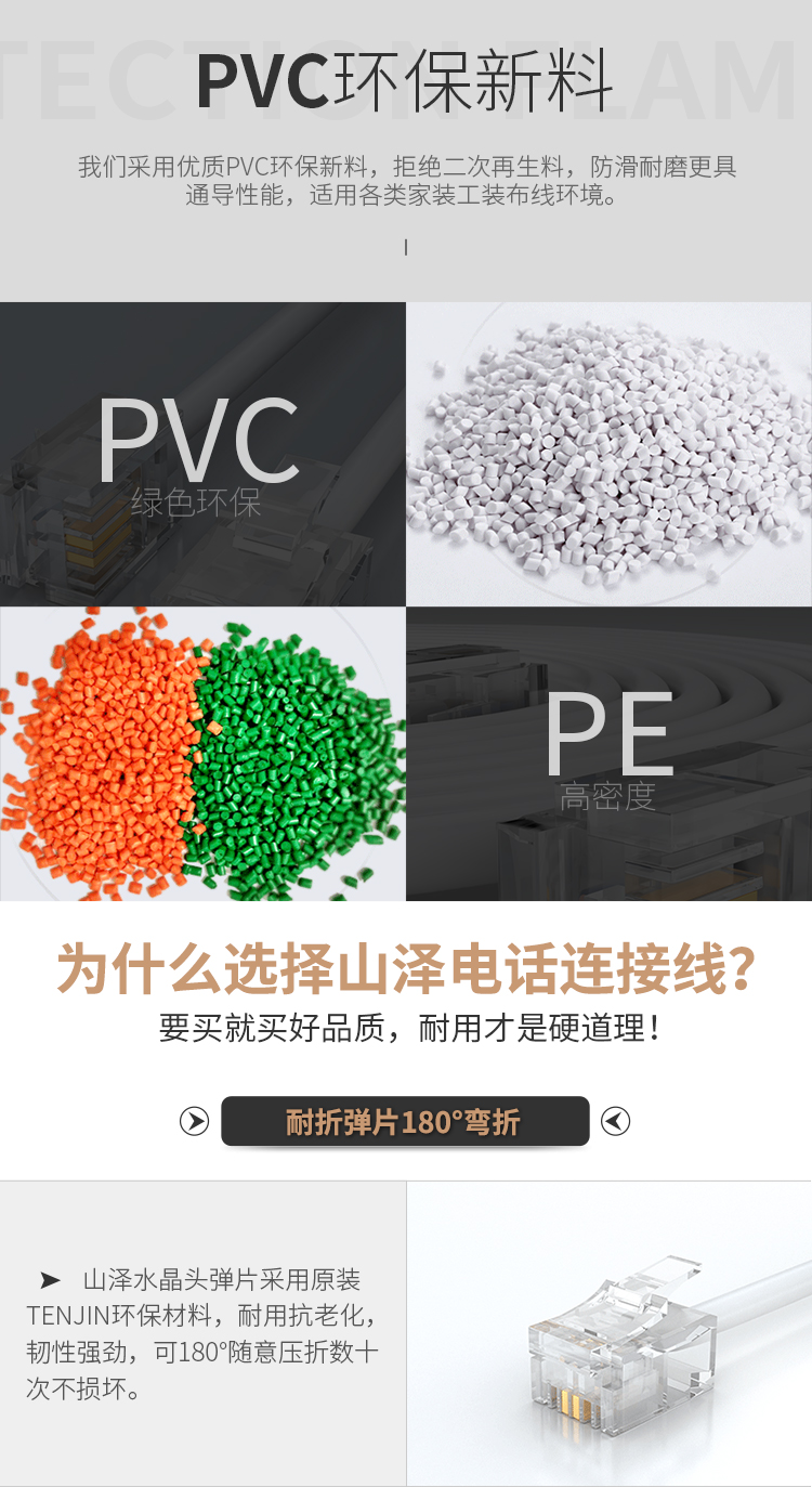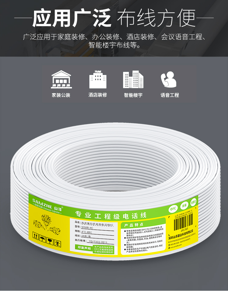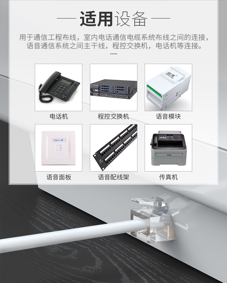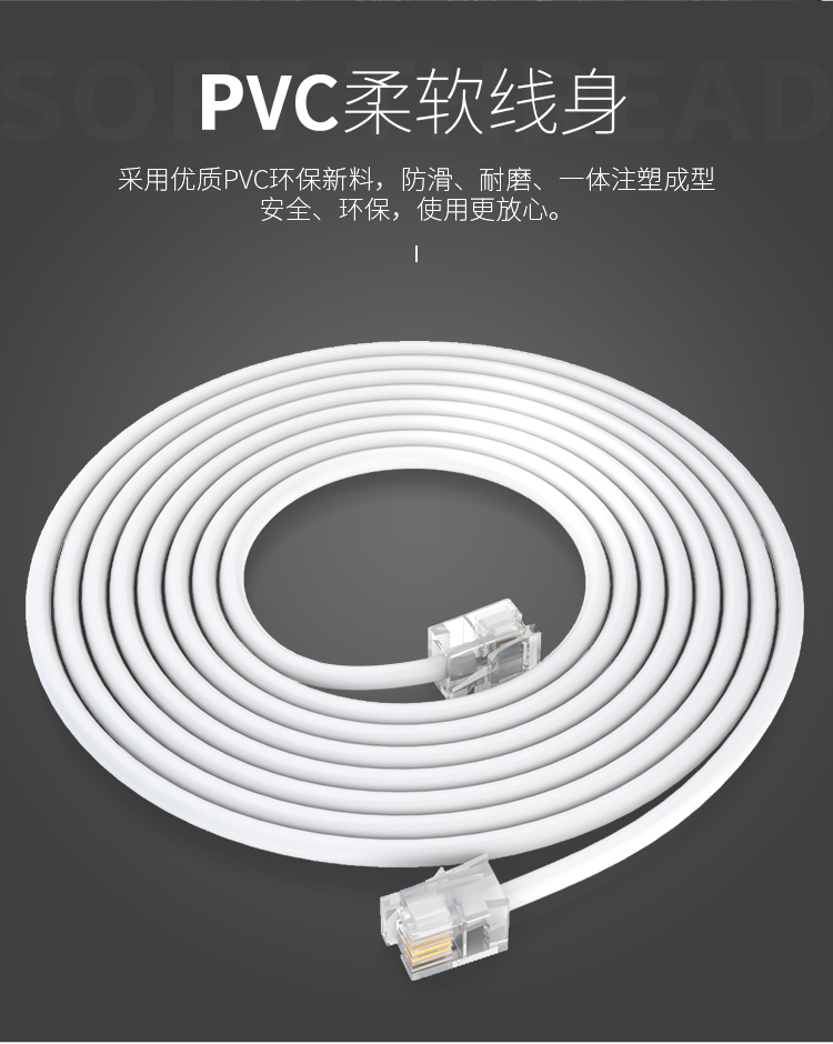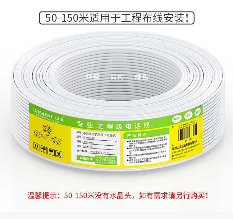 山澤 SAMZHE電話線2芯單股純銅座機(jī)跳線 語(yǔ)音連接線延長(zhǎng)線 帶電話水晶頭成品