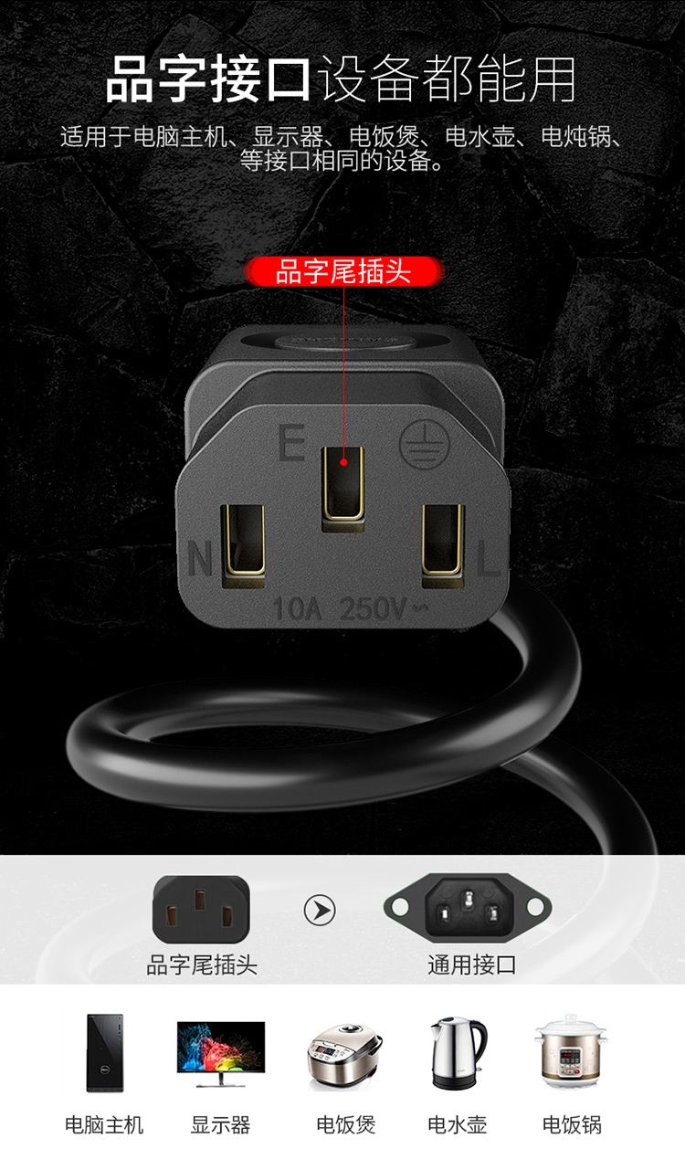 山澤(SANZHE)電腦主機國標(biāo)電源線 品字尾三孔電源連接線 適用電腦主機顯示器電飯煲 彎插頭0.5米WTDY05