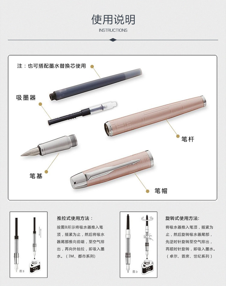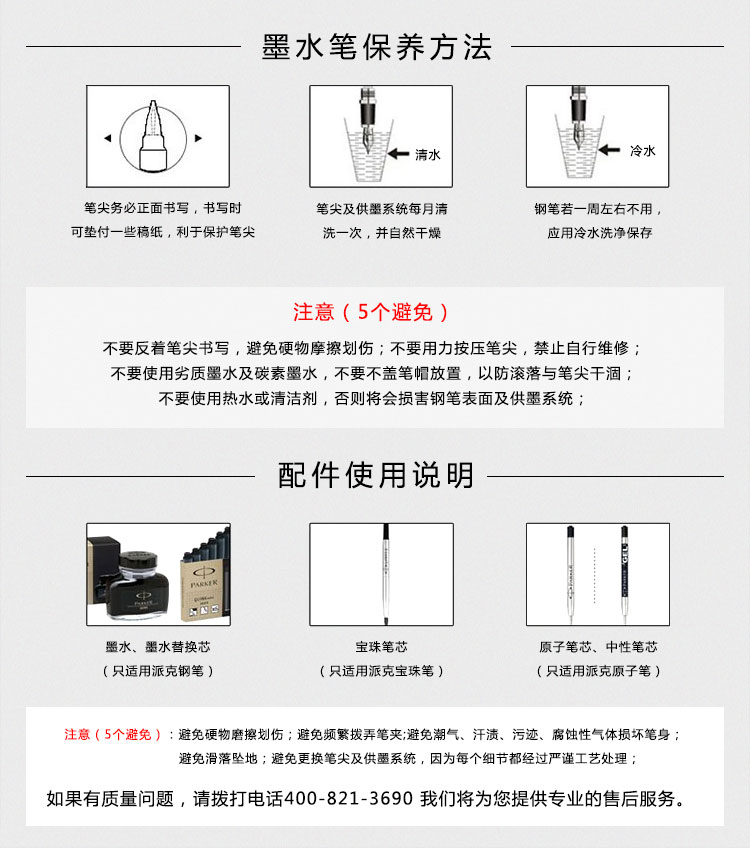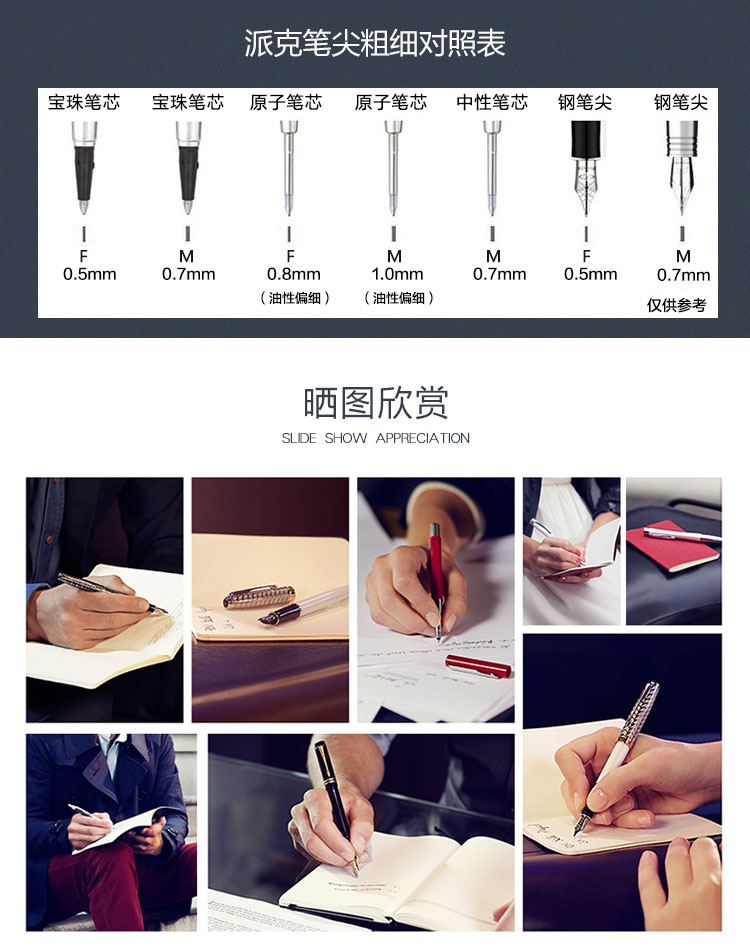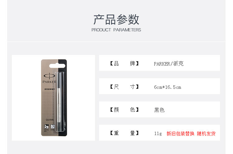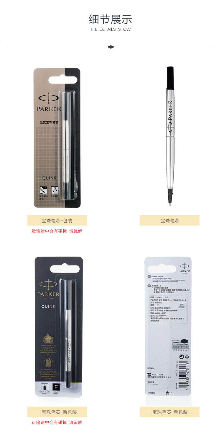 派克(PARKER)黑色寶珠筆芯 簽字筆芯(中細 0.7mm)