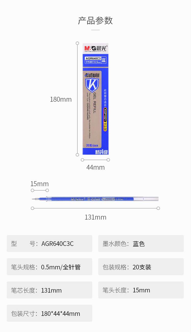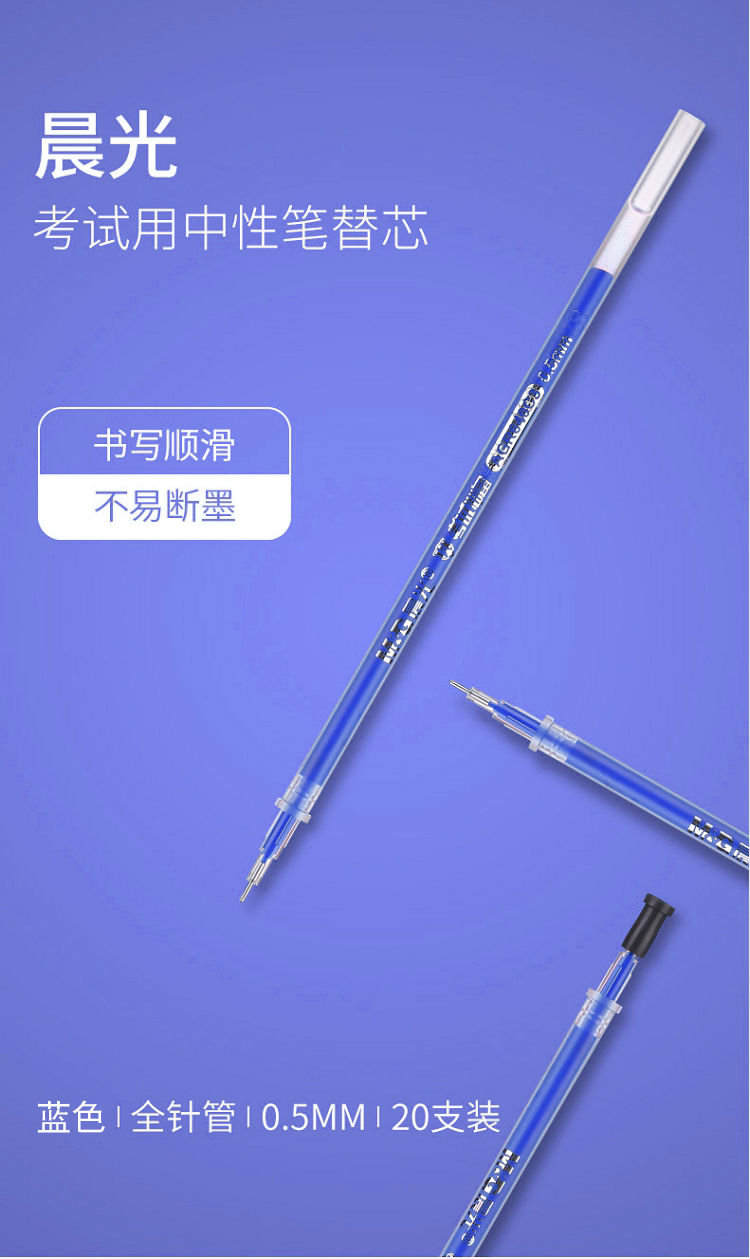 晨光(M&G)0.5mm全針管簽字筆替芯AGR640C3/20支裝(藍(lán)色)