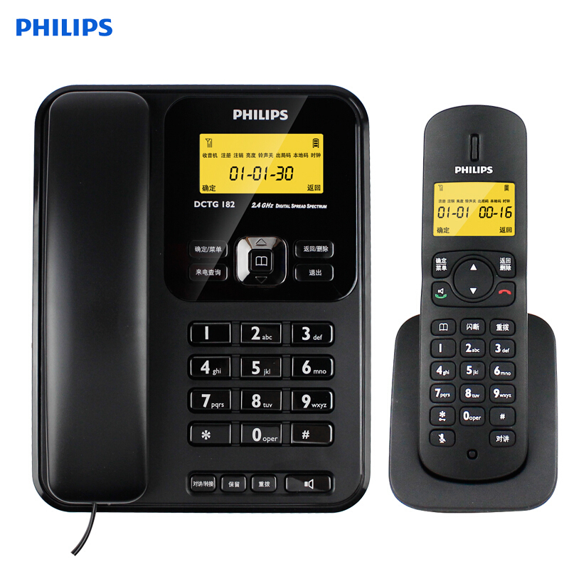 飛利浦(PHILIPS)無繩電話機(jī) 無線座機(jī) 子母機(jī) 辦公家用 可擴(kuò)展子機(jī) 中文菜單 雙免提 DCTG182一拖一(黑色)