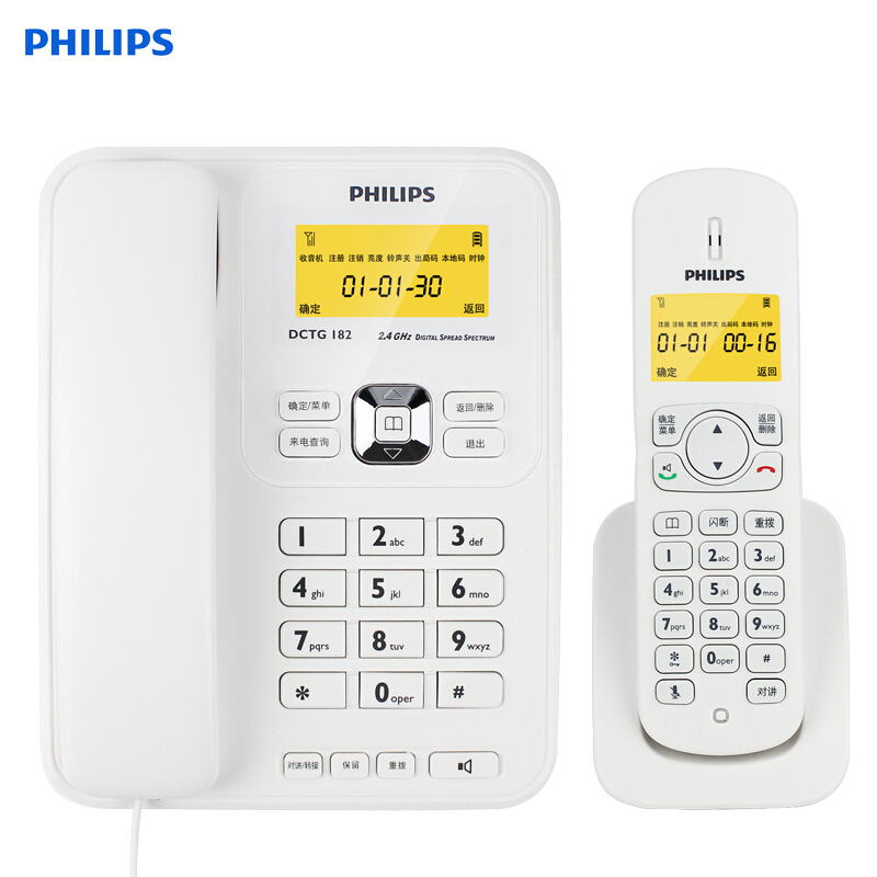 飛利浦(PHILIPS)無繩電話機(jī) 無線座機(jī) 子母機(jī) 辦公家用 可擴(kuò)展子機(jī) 中文菜單 雙免提 DCTG182一拖一(白色)