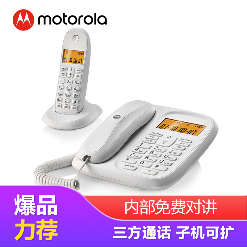 摩托羅拉(Motorola) CL101C 數(shù)字無繩電話機(jī)座機(jī)子母機(jī)中文顯示免提套裝辦公家用一拖一固定無線座機(jī) (白色)
