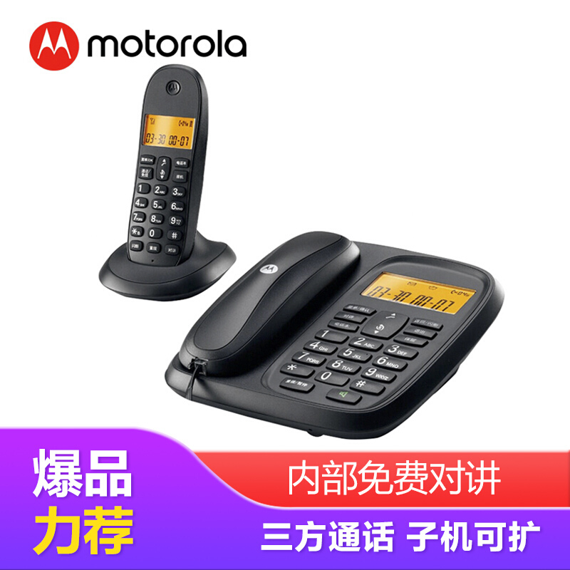 摩托羅拉(Motorola) CL101C 數(shù)字無繩電話機(jī)座機(jī)子母機(jī)中文顯示免提套裝辦公家用一拖一固定無線座機(jī) (黑色)