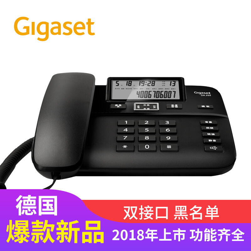 集怡嘉(Gigaset) DA260 原西門子 電話機(jī)座機(jī)黑名單功能/來電顯示/雙接口/辦公電話座機(jī)家用有繩固定電話免電池 (黑色)