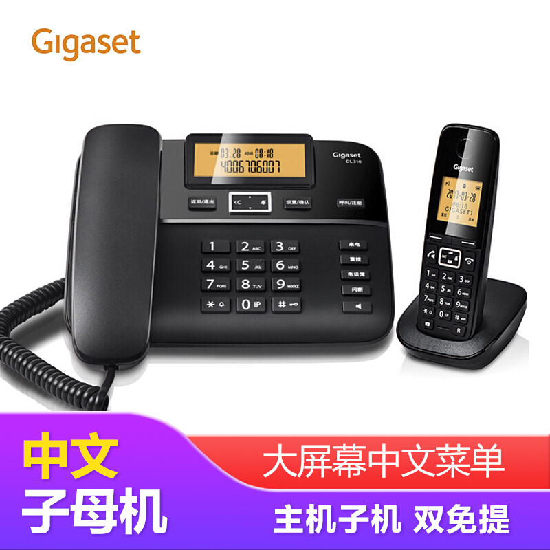 集怡嘉(Gigaset) DL310 原西門子品牌電話機(jī) 數(shù)字無繩電話家用子母機(jī)中文來電顯示一拖一辦公固定無線電話座機(jī)(黑色)