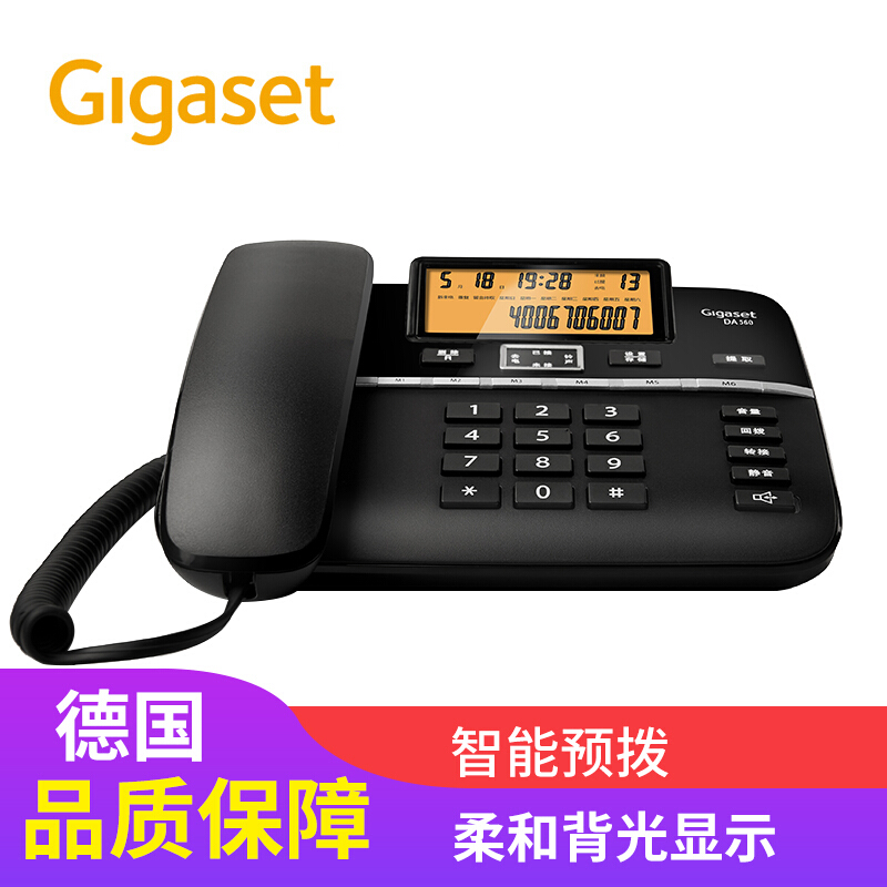 集怡嘉(Gigaset) DA560 原西門子 電話機(jī)座機(jī)黑名單功能來電顯示屏幕背光雙接口免提辦公電話座機(jī)家用有繩固定電話 (黑色)