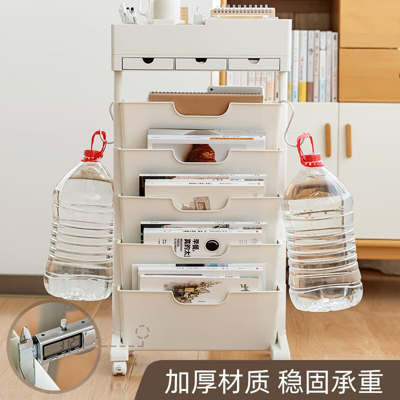 時代良品(SDLP)掛袋書立架 白色-三抽屜帶輪款 SD-9158