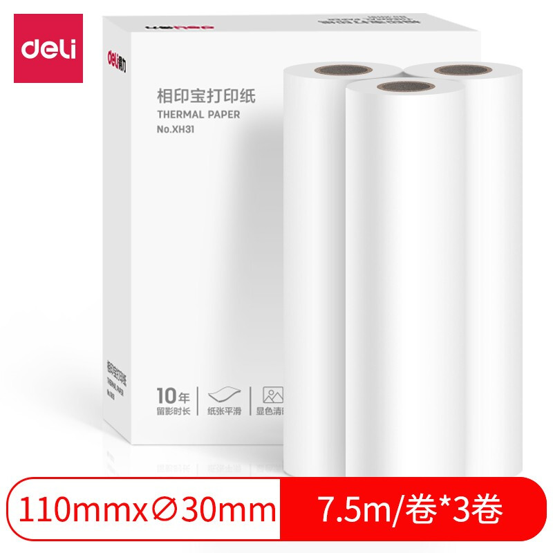 得力(deli) XH31 熱敏打印紙110*30mm 3卷/盒(7.5米/卷)