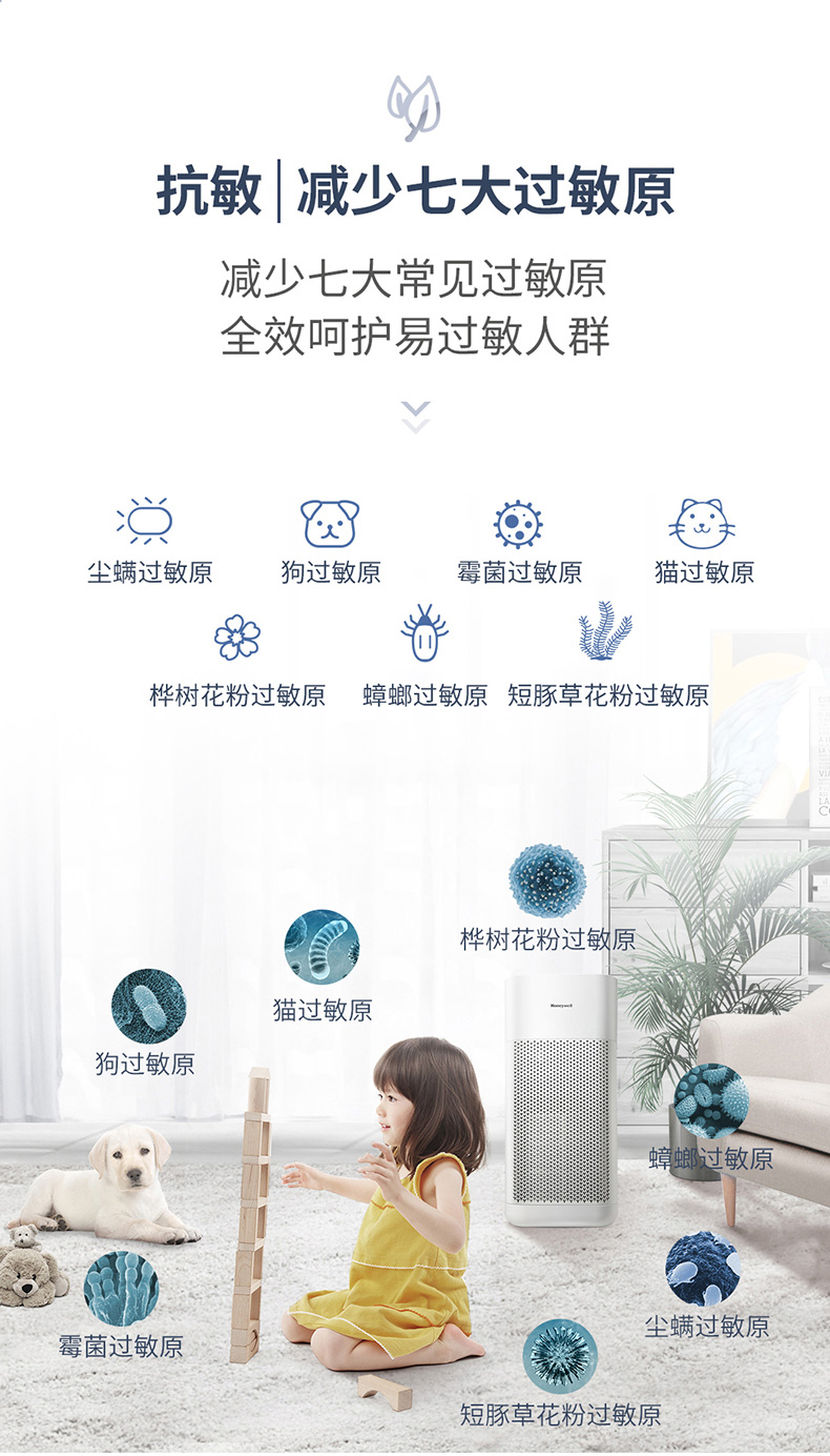 霍尼韋爾(Honeywell) KJ250F-J11W空氣凈化器 寵物家庭除甲醛除異味除過敏原除塵螨