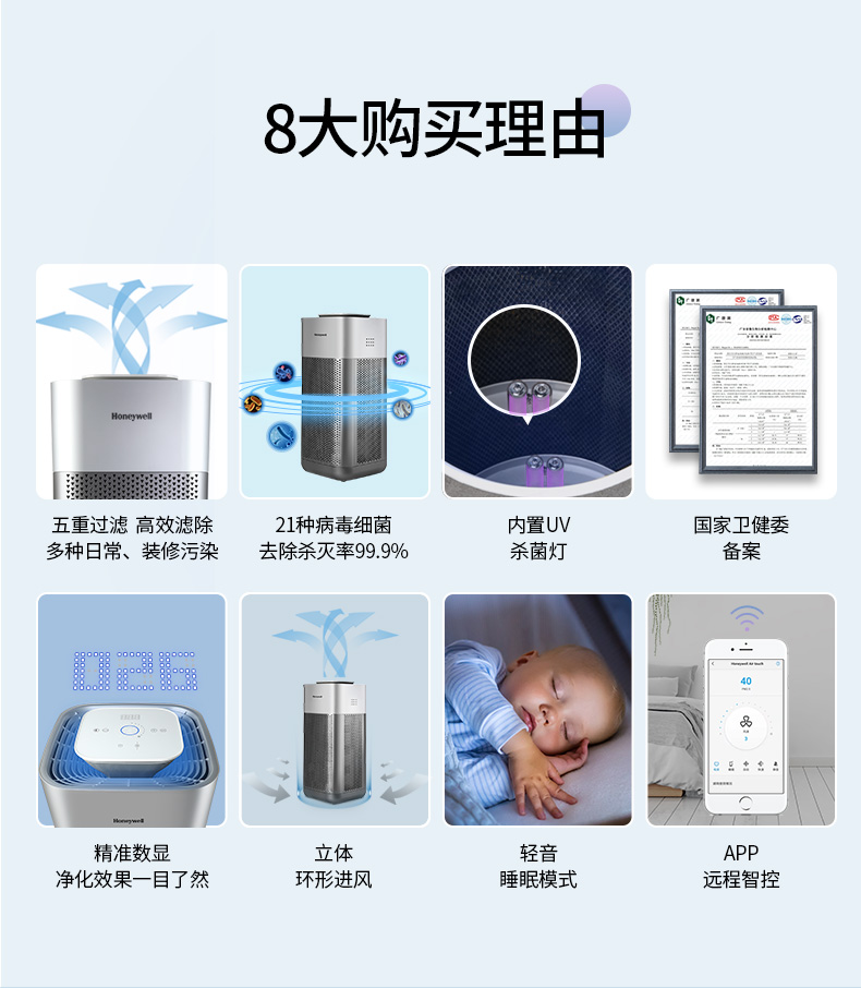 霍尼韋爾(Honeywell) KJ620F-J22S空氣消毒機(jī)UV消毒除菌除甲醛異味空氣凈化器