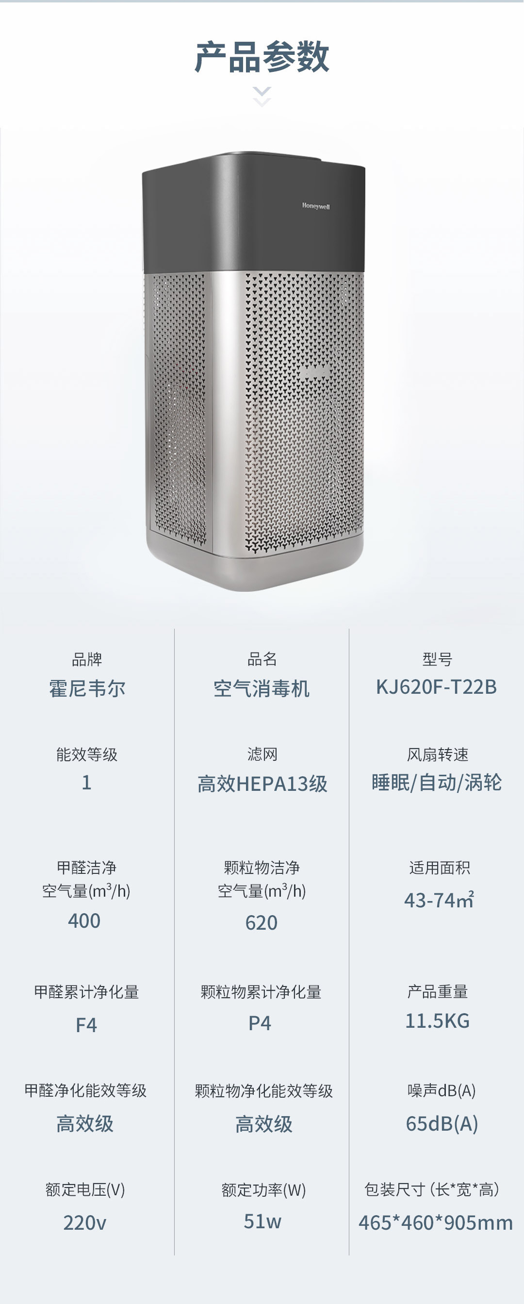霍尼韋爾(Honeywell) KJ620F-T22B空氣消毒機(jī)UV消毒除菌除甲醛異味空氣凈化器