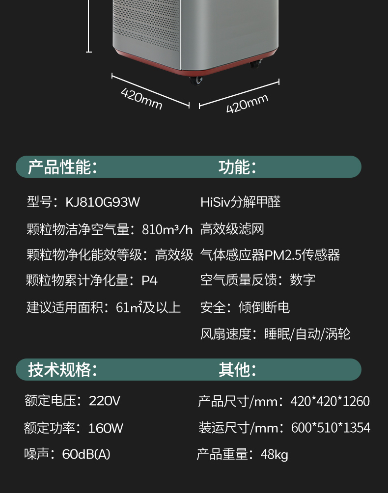 霍尼韋爾(Honeywell) KJ810G93W空氣凈化器 商務辦公除甲醛 大空間除霧霾凈化器遙控款