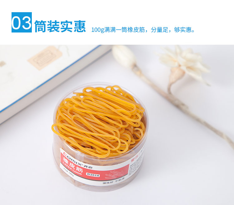 齊心(Comix) 100g桶裝辦公耐用彈力橡皮筋/橡膠圈/乳膠圈 辦公用品 B3514