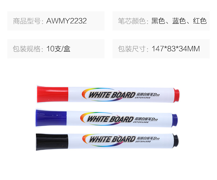 晨光(M&G)文具可擦白板筆套裝 單頭易擦辦公會(huì)議筆(7黑+2藍(lán)+1紅) 10支/盒AWMY2232