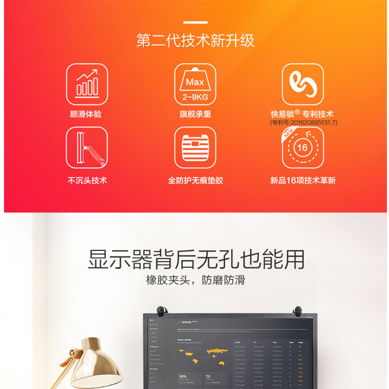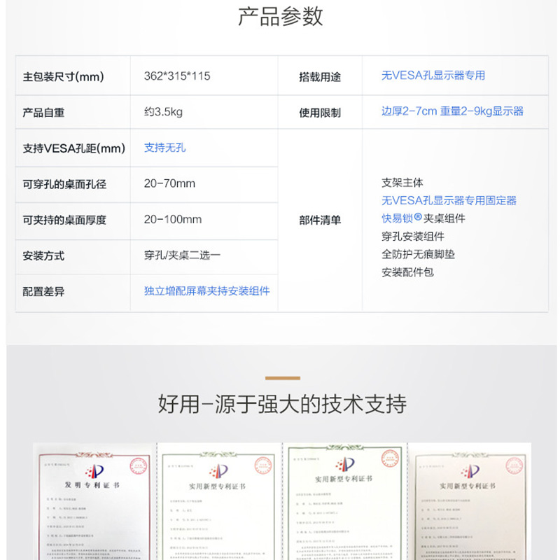自由懸停,橫豎屏切換,usb接口,節(jié)省桌面空間 適用17-30英寸 ?