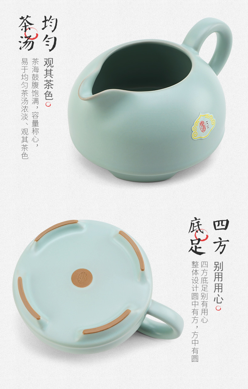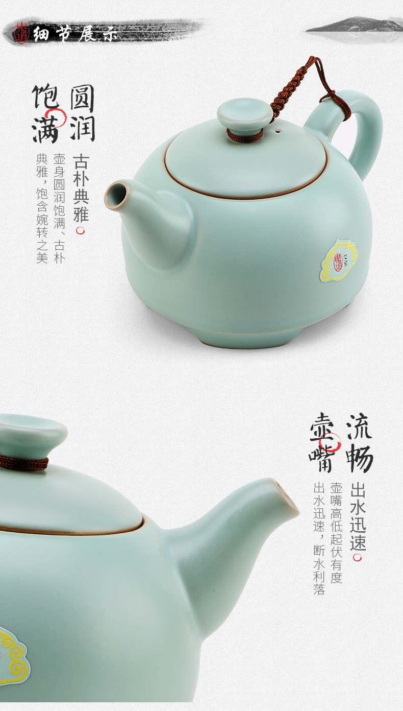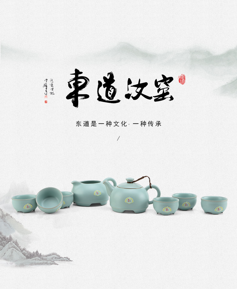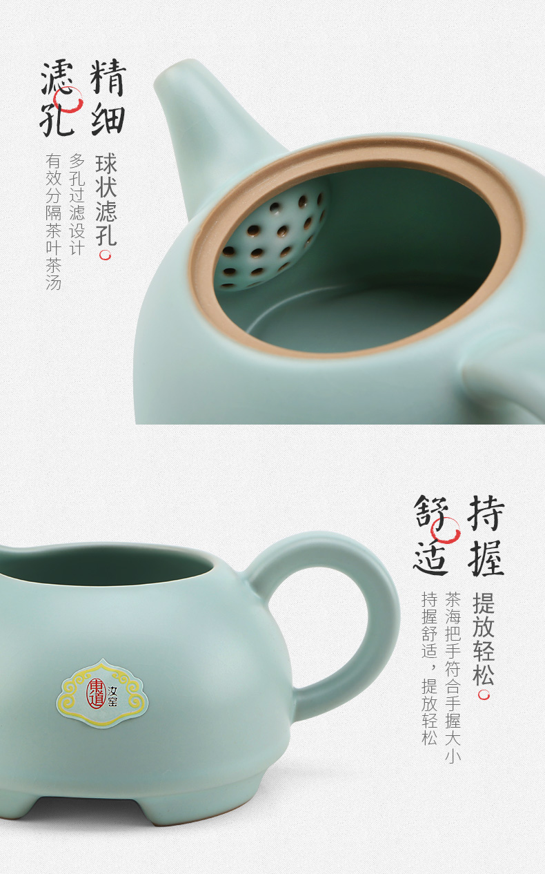東道汝窯 功夫茶具套裝 圓融茶壺半組/1壺1海6杯(天青色)