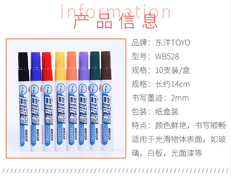 東洋(TOYO) WB-528 白板筆 水性可擦 8色套裝